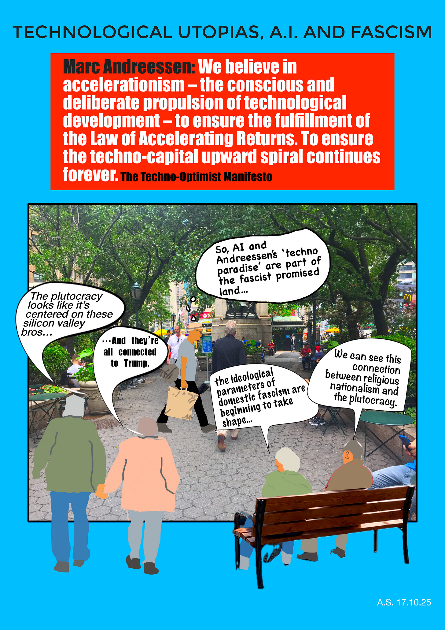 What if the economic pacesetter these days, Artificial Intelligence, is also a harbinger of a burgeoning fascist reality? At what points are there overlaps in the political horizons of JD Vance and his pals, religious nationalists, and the techno-gurus? Do they have a common play book? And, what about the hedge funds and venture capitalists who are bankrolling the infrastructure touted as the pathway to the coming techno-paradise?